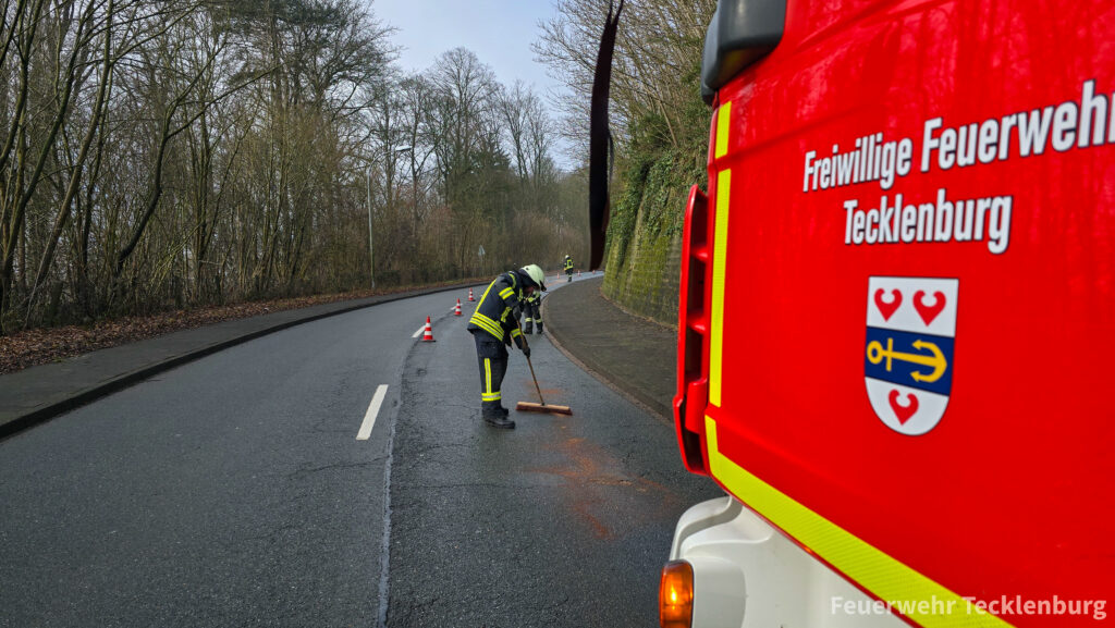 Am Samstag wurden die Einheiten Tecklenburg zu einer Ölspur alarmiert. Die Fahrbahn wurde auf einer Länge von 300 m abgestreut. Anschließend wurde die Einsatzstelle an die Polizei übergeben.