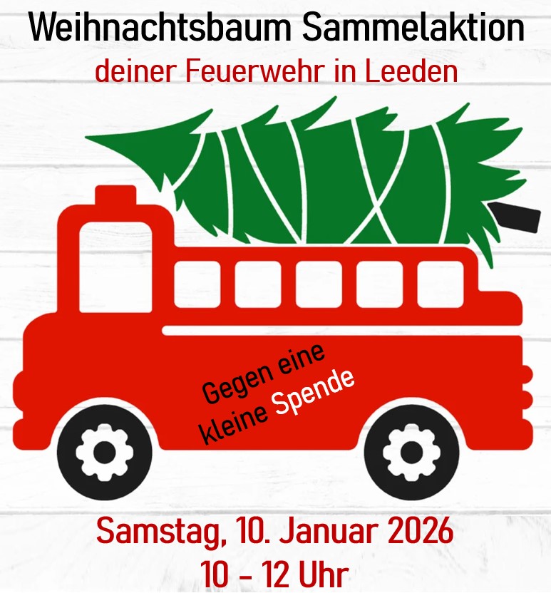 Die Einheit Leeden ist zwischen 10:00 und 12:00 Uhr im Ortsteil Leeden unterwegs und sammelt die ausgedienten Weihnachtsbäume ein. Gegen eine kleine Spende nehmen wir euren Baum gerne mit.